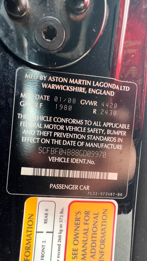2008 ASTON MARTIN VANTAGE REAR WHEEL DRIVE with powerful 4.3L DOHC 32-VALVE V8 engine and driven only 53092 miles! FINANCING AVAILABLE** Contact Auto Motion at 571-424-8225 or visit our website: www.automotionva.com