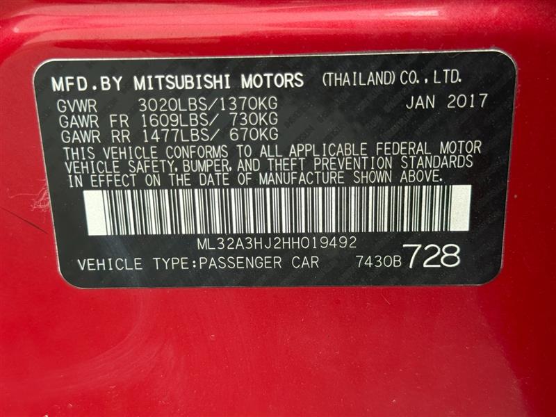 2017 MITSUBISHI MIRAGE FRONT WHEEL DRIVE with powerful 1.2L MIVEC DOHC 3-CYLINDER engine and driven only 120901 miles! FINANCING AVAILABLE** Contact Auto Motion at 571-424-8225 or visit our website: www.automotionva.com