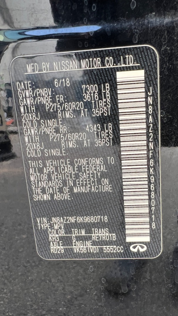 2019 INFINITI QX80 REAR WHEEL DRIVE with powerful 5.6L V8 W/VVEL & DIG engine and driven only 119315 miles! FINANCING AVAILABLE** Contact Auto Motion at 571-424-8225 or visit our website: www.automotionva.com