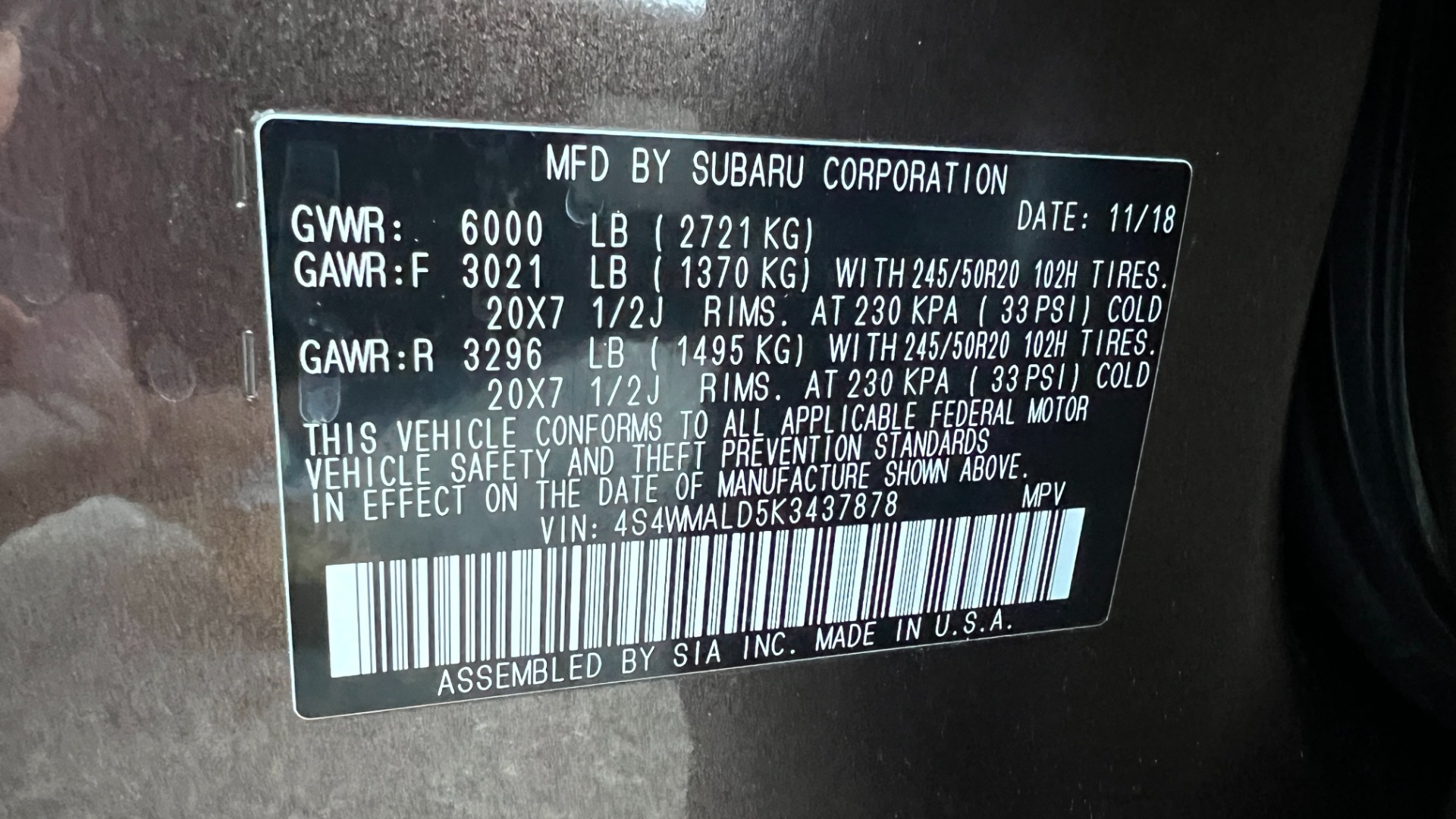 2019 SUBARU ASCENT ALL WHEEL DRIVE with powerful 2.4L DOHC INTERCOOLED TURBOCHARGED engine and driven only 123237 miles! FINANCING AVAILABLE** Contact Auto Motion at 571-424-8225 or visit our website: www.automotionva.com